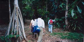 30キロ走り到着後、ジャングルの道を進みながら、自生している植物の説明を受ける。