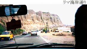 リマはほとんど雨が降らないので空気は乾燥し、上空からは砂で街全体が赤茶色に見えます。海岸沿いを走ると 砂漠地帯、土のがけの上に家が立ち、地震でも来たら大変なことになると思った。