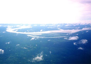 | 飛行機の中から見たアマゾン河 | アマゾン河、船着場 |