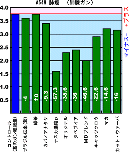 | 癌患者さんの治療には二種類あります。 ■ひとつは、免疫機能を賦活するものを投与し免疫を介して癌細胞を攻撃する機能を誘導するもの。 ■もうひとつは、癌細胞に対して直接傷害するもの、すなわち抗癌性のある薬剤です。 われわれは、後者の直接癌細胞に作用し、癌細胞の増殖を弱めたり死滅させるものを アマゾン産薬用植物に見出しました。 ここに、その研究成果を示すと同時に少しでも皆様のお役に 立てれば幸いと存じております。 注意 この研究データは各種機能性食品の効能を参考とするものであり、適切な治療行為等を意味するものではありません。 *この試験データは前田医学博士、ナスカCO.,LTD.の許可無く「転写、引用を禁じます」 |