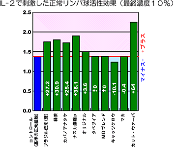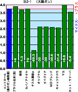 | ■数値は濃度10%の機能性食品を添加し48時間後に得たものです。 縦軸はテトラカラー法による細胞増殖の動態を示したものです。 |