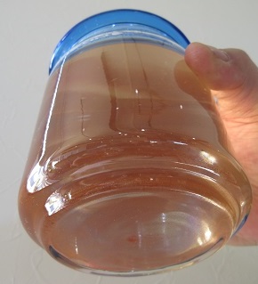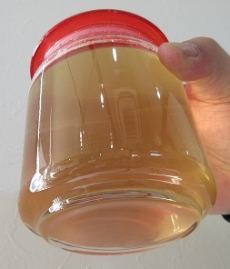 | ナスカルーツ 水に溶けない脂溶性成分が底の面に見える。 エタノール抽出+熱水抽出 |