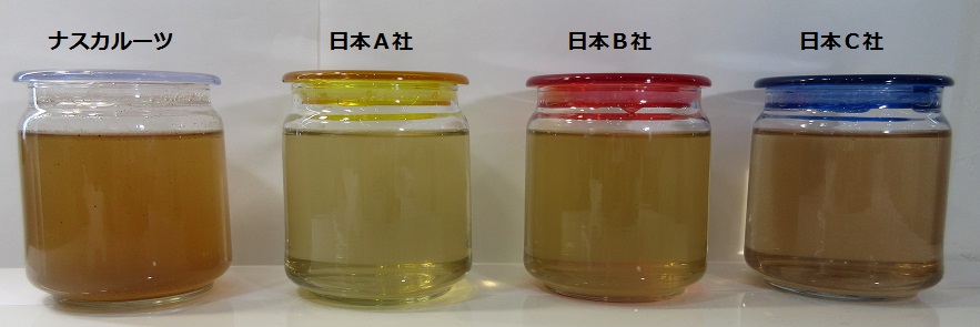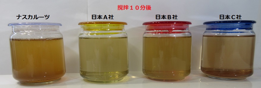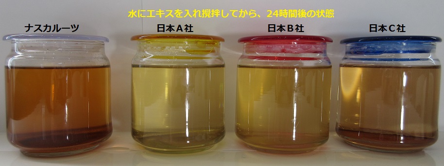 日本A社 完全に水に溶けており 沈殿物はなし。 熱水抽出(水溶性抽出) |
