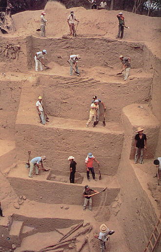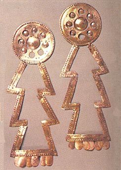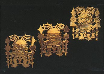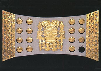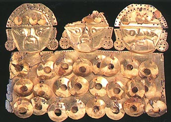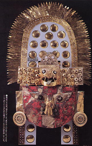 | インカ帝国以前の10世紀〜11世紀にかけてペルー北海岸で栄えたバタン・グランデ地域の 巨大神殿郡を島田 泉 教授が発掘調査し「シカン文化」と名づけた。 1991年〜1992年にかけて発掘したシカンの支配者階級の墓からは、大量の黄金製品を含む1.2トンもの副葬品が出土し、20世紀有数の大発見と注目を集めました。 この発掘で興味深いことは、「墓の主(王)」が足は上に、顔は地面にと逆さまに埋葬されており、顔には黄金の仮面、そして西の方角を見つめるように埋葬されていたことです。 太陽が昇る東ではなく、なぜ西を強調しているのだろうか・・・・。 (ペルー側から西方向は太平洋である、そしてその先には日本が・・・・・?) そして、不思議なことは王のお供として埋葬されていた人達の数人はDNA鑑定の結果、 日本のアイヌ人であることが解ったことです。 ☆ アンデス・インカ雑貨写真館のトゥミはこの王墓から出土したレプリカです |