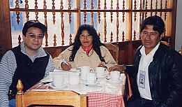 またまた客引きが一杯、すると何処からか「ミスター平山、Oさん」と聞こえる。 クスコでのガイド役のアントニオと女性が迎えに来てくれていた。 その女性がOさんに向かって「オー、グラシアス」 紙袋を指差し「それそれ、私の主人が預けた物です」。 (Oさん)、OKと言って手渡す。(私)Oさんに向かって、ほんまにこの人だと判るの? (Oさん)、ウンだって預かった人と同じ会社のバッジを胸にしているものー。 (私)フンフンなるほどなー。(向こうからそれそれと言ってきているくらいやからなー) (アントニオ)英語で早く行きましょう時間があまりないから…。 私は英語もほんの単語(中学1年くらいか?)しか判らないが、Oさんが英語は 何とかヒアリングだけはできるらしいー。 (この人、変な人やなー、アメリカの空港で入国審査のことで聞かれた時、 うまく聞けなかったのに?何で判るんやろ?) ガイドさん、何か発音のおかしい英語で、 「ホテルへ向かいます。そこで荷物を置いてから少し一休みして下さい。 クスコは高度が3400mもあるので先に身体の順応が必要です」。 私、チンプンカンプン! (Oさん)、オー、イエス、イエス。内容を私に説明する。 (私)今の発音のおかしい英語は随分長かったのに、Oさん何故うまく訳せるんやろー? ウーーン、何でやろー?何でやろー?おかしいーなー? フーン。少しして気がついた、 アメリカ人の発音の英語は判らないのに 「日本英語に近い発音(舌を巻かない)」やったら判るんやろなぁー。 さすがー、すごい、すごい!(Oさんは英語の塾に通っているとのこと) 途中、銅像の前で少し説明がある。(Oさん私に説明する) 15分位でホテルに到着、 (ガイドさん)荷物を部屋に置いたら、すぐにここに降りて来て下さい、この後の 説明をしてから、空港に戻りますから。休み時間は40分程度あります。(私達)OK